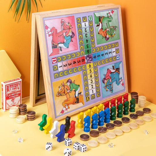 100 Règles De Jeux French 4in1 Games Il Gioco Dell’Oca, Stapeldammen, Nine Men’s Morris, Jeu Des Petits Chevaux Wood