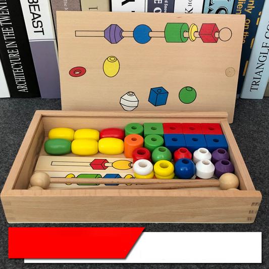 Wood Toddler beaded, lacing - Puzzle beaded box
