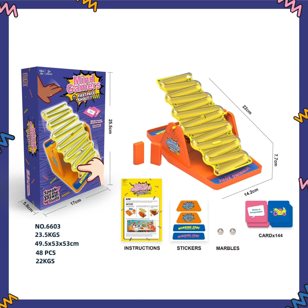 "Mind Gamers" is a high-energy, fast-paced party game that challenges players to think quickly and shout even faster. With a mix of visual prompts and category-based cards, it’s designed to spark spontaneous answers and hilarious moments.