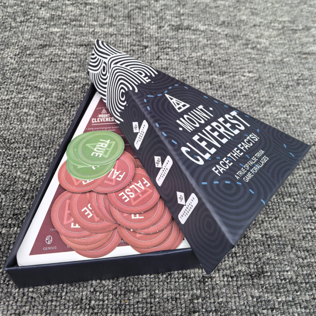 It’s all about testing your knowledge by facing statements and deciding whether they’re true or false. The box features geometric patterns and bold fonts, giving it a modern, brain-teasing vibe. Perfect for families, classrooms, or casual game nights, especially if you enjoy fast-paced facts and mental challenges.