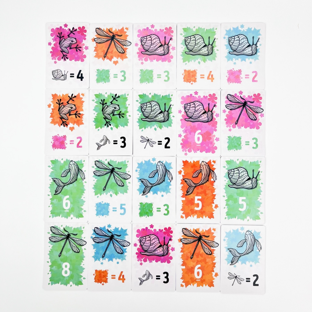 It’s a visually captivating board game or card game with a bold geometric design. The artwork features a stylized frog with black limbs and vibrant patterns, hinting at themes of nature, balance, and perhaps ecological interaction—true to the idea of "symbiosis." The pink and purple gradient background makes it stand out with a modern, almost abstract feel.