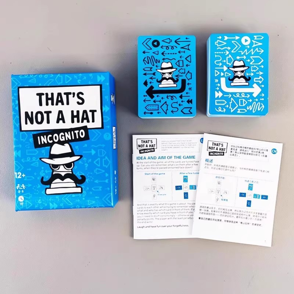 Put on your poker face and dive into the hilarious world of That's Not a Hat: Incognito, where memory meets mischief. With its sleek blue box and undercover character in hat and shades, this party game challenges players to remember—or convincingly pretend to remember—which gift is in front of them.