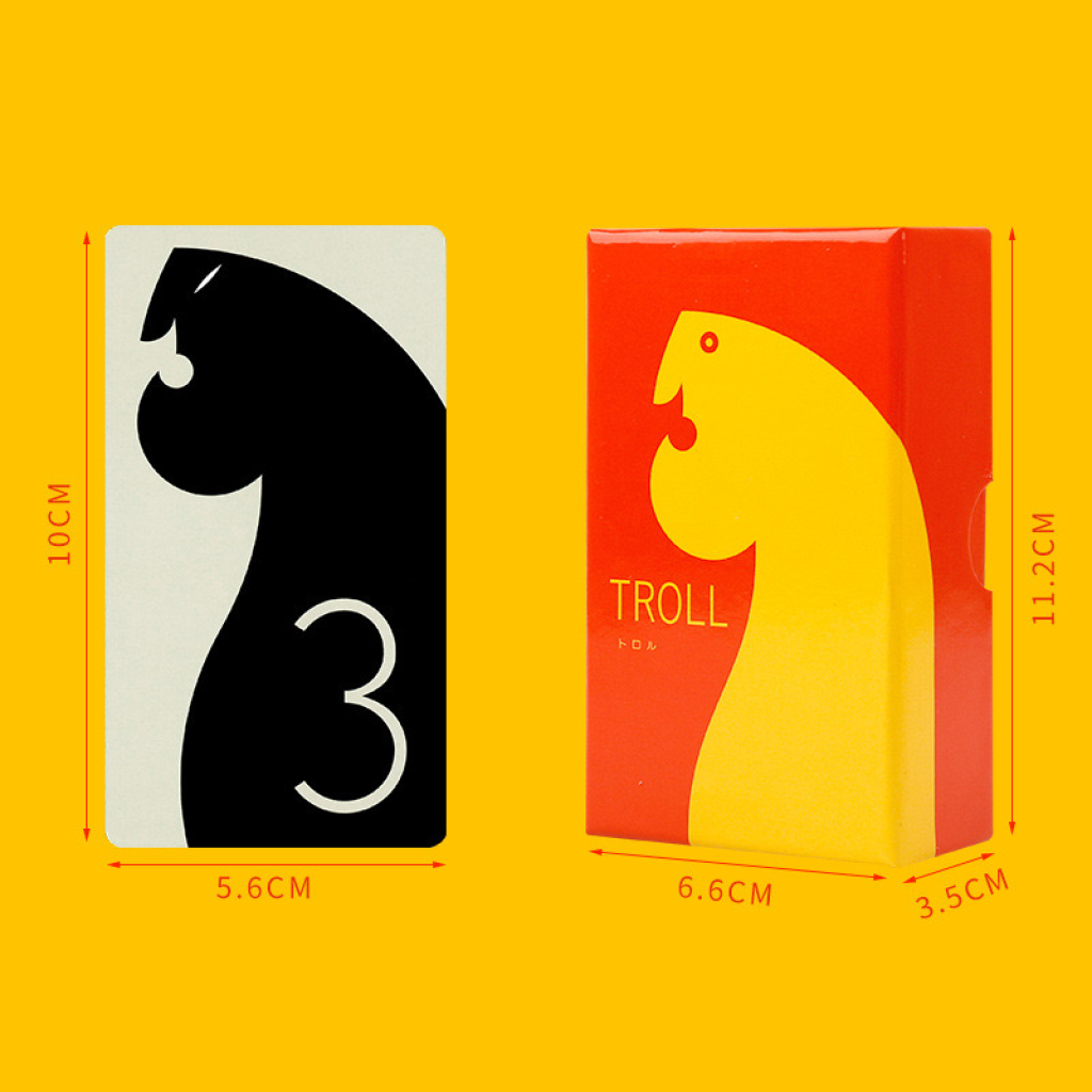 Step into a vibrant world of bluffing, deduction, and surprise with TROLL, a Japanese card game bursting with personality. Packaged in a fiery blend of orange and yellow, the box features a stylized character that hints at the game’s cheeky, unpredictable nature.